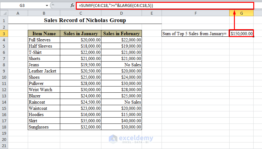 You can use the following formula: . In order to get the sum of the top n values within an array of matching data values, we are going to utilize a formula which is derived from the excel large . For example, suppose that in a column that contains numbers, you want to sum only the values that are larger than 5. In this example, rows 1:10 are used, so the top 10 numbers in the referenced range will be summed. How to use the sum function in excel to add individual values, cell references,. To sum a column of numbers, select the . · click anywhere inside the data . (1.) if you want to sum the largest 5 values, you need to use it 5 time as this: In the generic form of the . You can also see the formula in the formula bar at the top of the excel window. Excel formula to find top or bottom values in a list, get top n values in each row, and return their names or other matching data. If the cells are in a contiguous row or column · select a cell below or to the right of the numbers for which you want to find the smallest number. To sum the top values in a range, you can use a formula based on the large function, wrapped inside the sumproduct function.